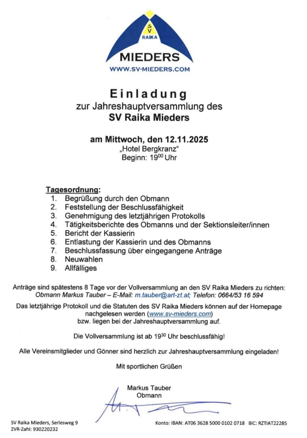 Obmann: Markus Tauber